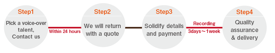 Submitting an order is very simple. Once you decide on your voice-over talent and delivery date, we will give you an estimate within 24 hours. Your professional Japanese voice-over will be delivered in 3-7 business days.